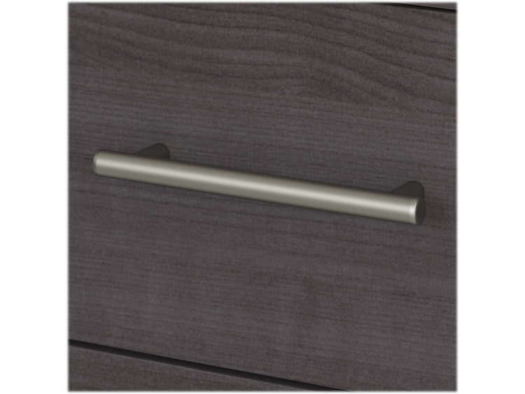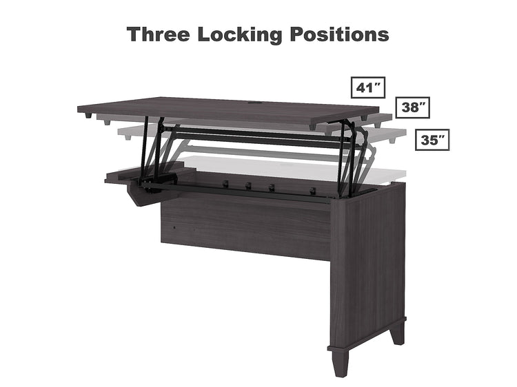 The Bush Furniture Somerset adjustable desk with hutch and bookcase offers an ergonomic solution for the home or small office. This furniture set is a perfect solution for those seeking for a stylish and functional ergonomic workspace. The mechanical Lift-n-Lock system allows the 42"W x 24"D return to lock into place at standing heights of 35", 38", and 41" and easily return to a seated position. The 71"W x 24"D office desk has its own storage with a box drawer for supplies and a file drawer that holds legal- and letter-size documents. The hutch adds two frosted glass doors for concealed storage as well as open cubby spaces with two shelves. The bookcase features two fixed shelves and three shelves that can be adjusted. Fixed surfaces are tested to meet ANSI/SOHO standards for safety and performance while the mechanical lift is rigorously tested to Bush Furniture's own quality standards. Backed by a 6-year manufacturer warranty.