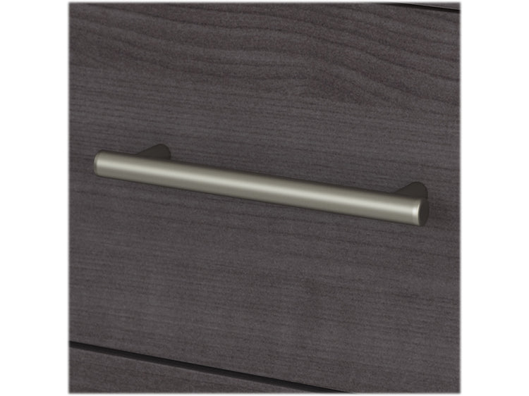 The Bush Furniture Somerset 71"W three-position adjustable desk with hutch and file cabinet offers an ergonomic solution for the home or small office. This furniture set is a perfect solution for those seeking for a stylish and functional ergonomic workspace. The mechanical Lift-n-Lock system allows the 42"W x 24"D return to lock into place at standing heights of 35", 38", and 41" and easily return to a seated position. The 71"W x 24"D office desk includes its own storage with a file drawer and a box drawer for documents and supplies you want to keep close by. The hutch adds two frosted glass doors for concealed storage as well as open cubby spaces with two shelves. The two-drawer file cabinet accepts legal- and letter-size paperwork. Fixed surfaces are tested to meet ANSI/SOHO standards for safety and performance while the mechanical lift system is rigorously tested to Bush Furniture's own quality standards. Backed by a 6-year warranty.