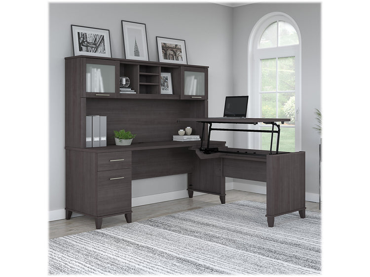 Bush Furniture Somerset 72"W 3 Position Sit to Stand L Shaped Desk with Hutch, Storm Gray (SET015SG)