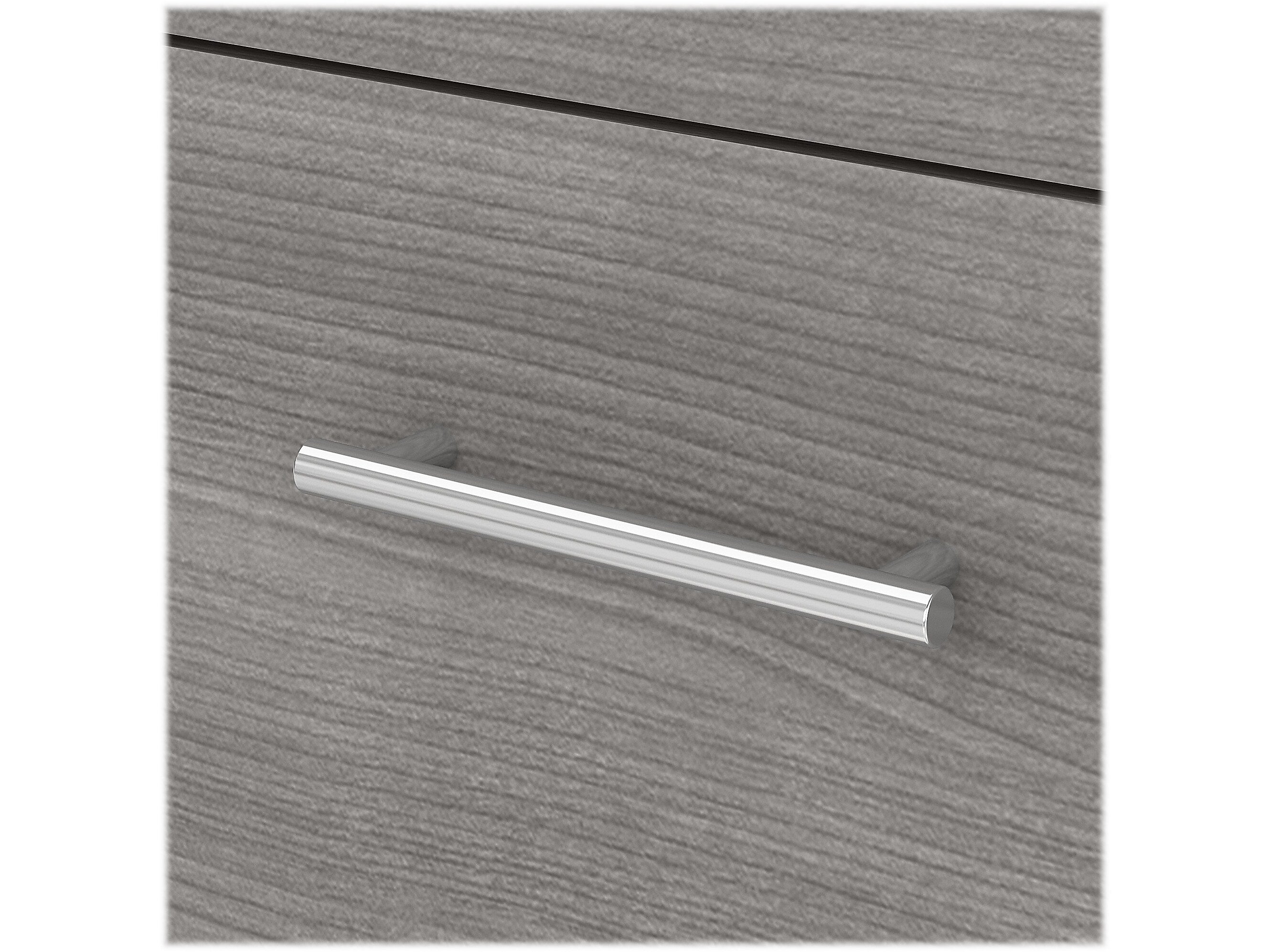 - Laminated over composite wood in a platinum gray finish