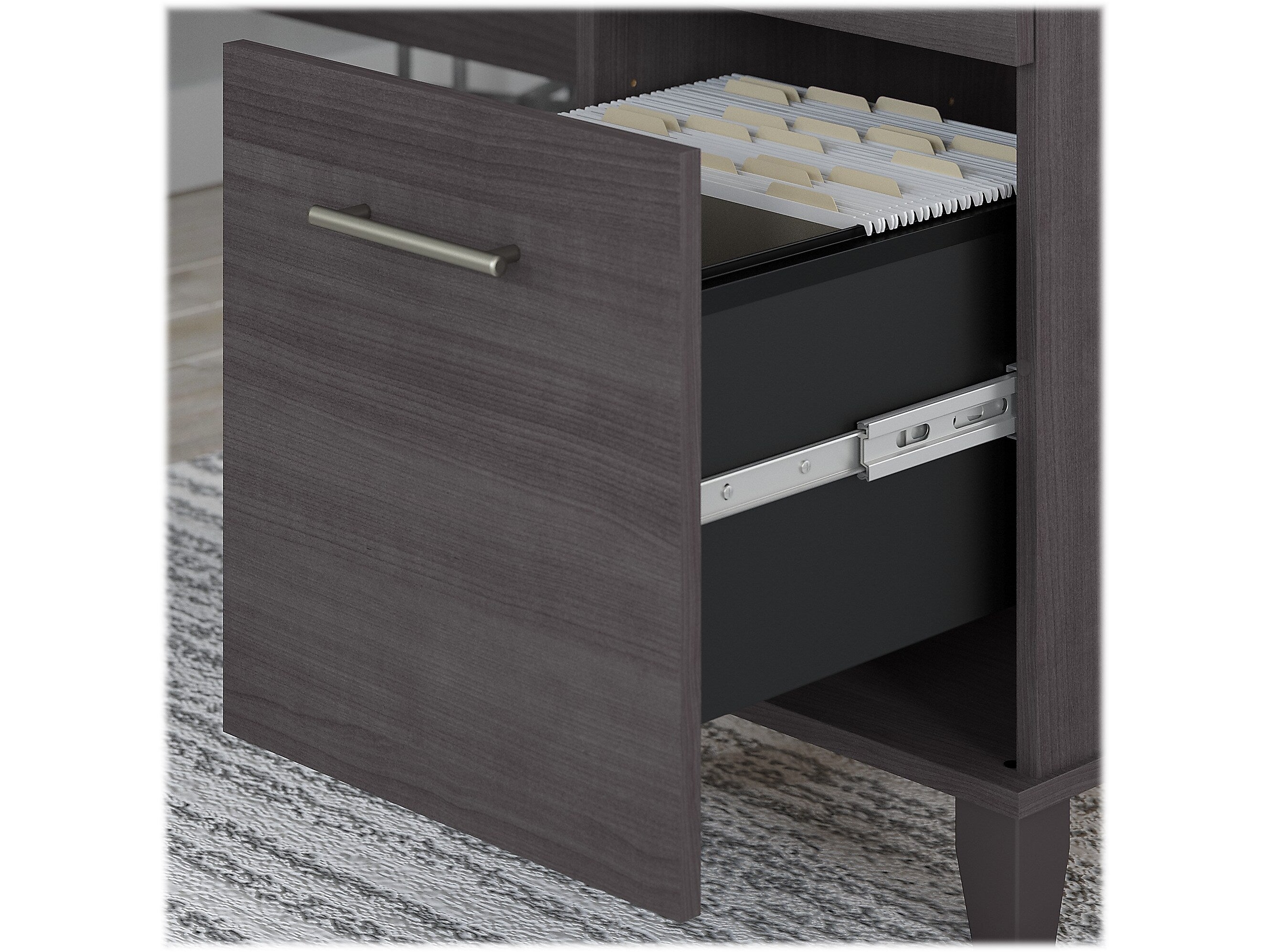 - File drawer opens on smooth ball bearing slides for an easy reach to letter-size paperwork