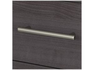 - Laminated over composite wood in a storm gray finish