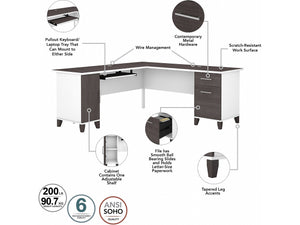 Bush Furniture Somerset 72"W L Shaped Desk with Storage, Storm Gray/White (WC81010K)