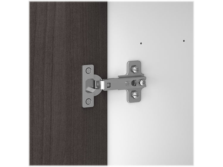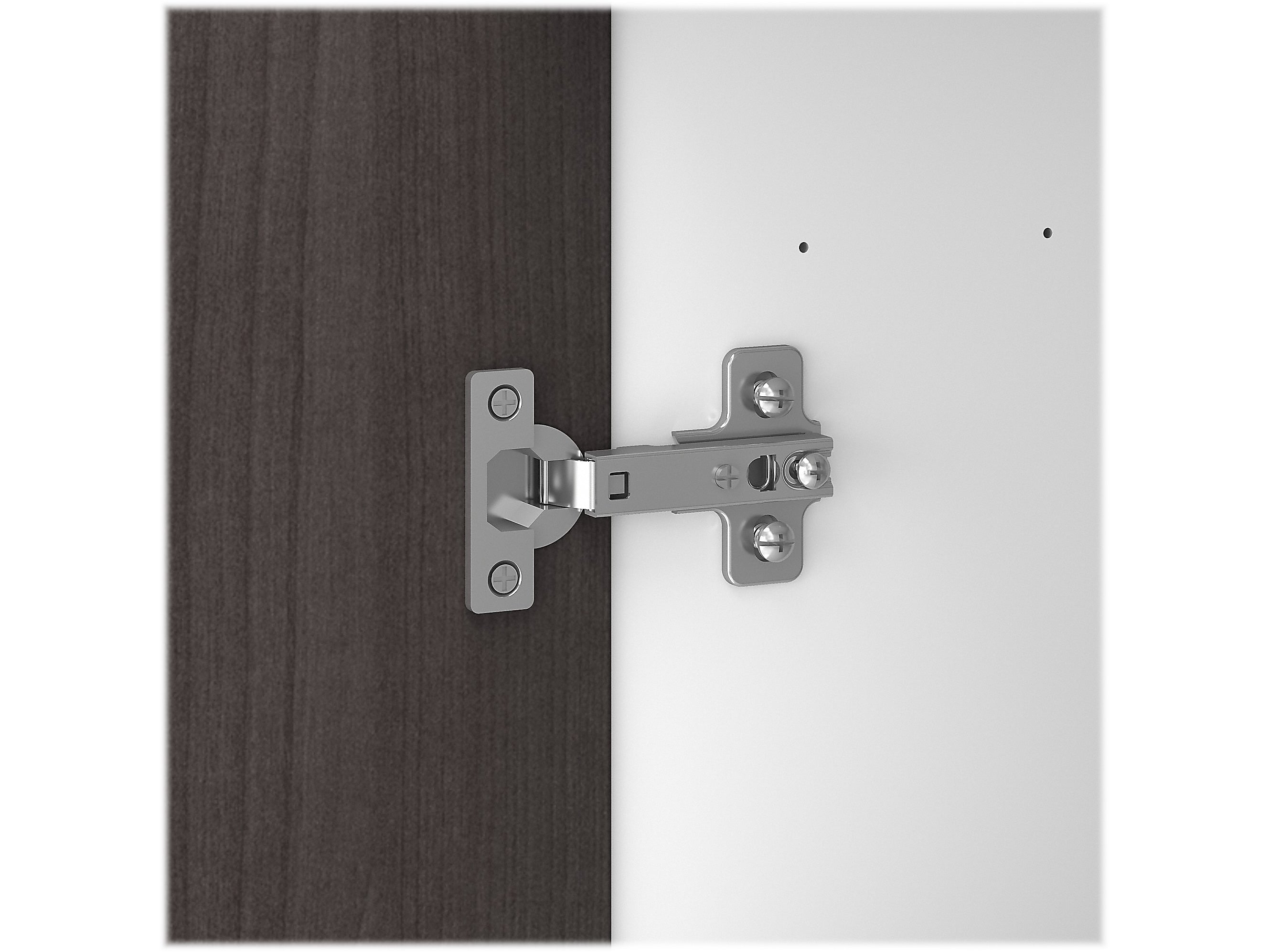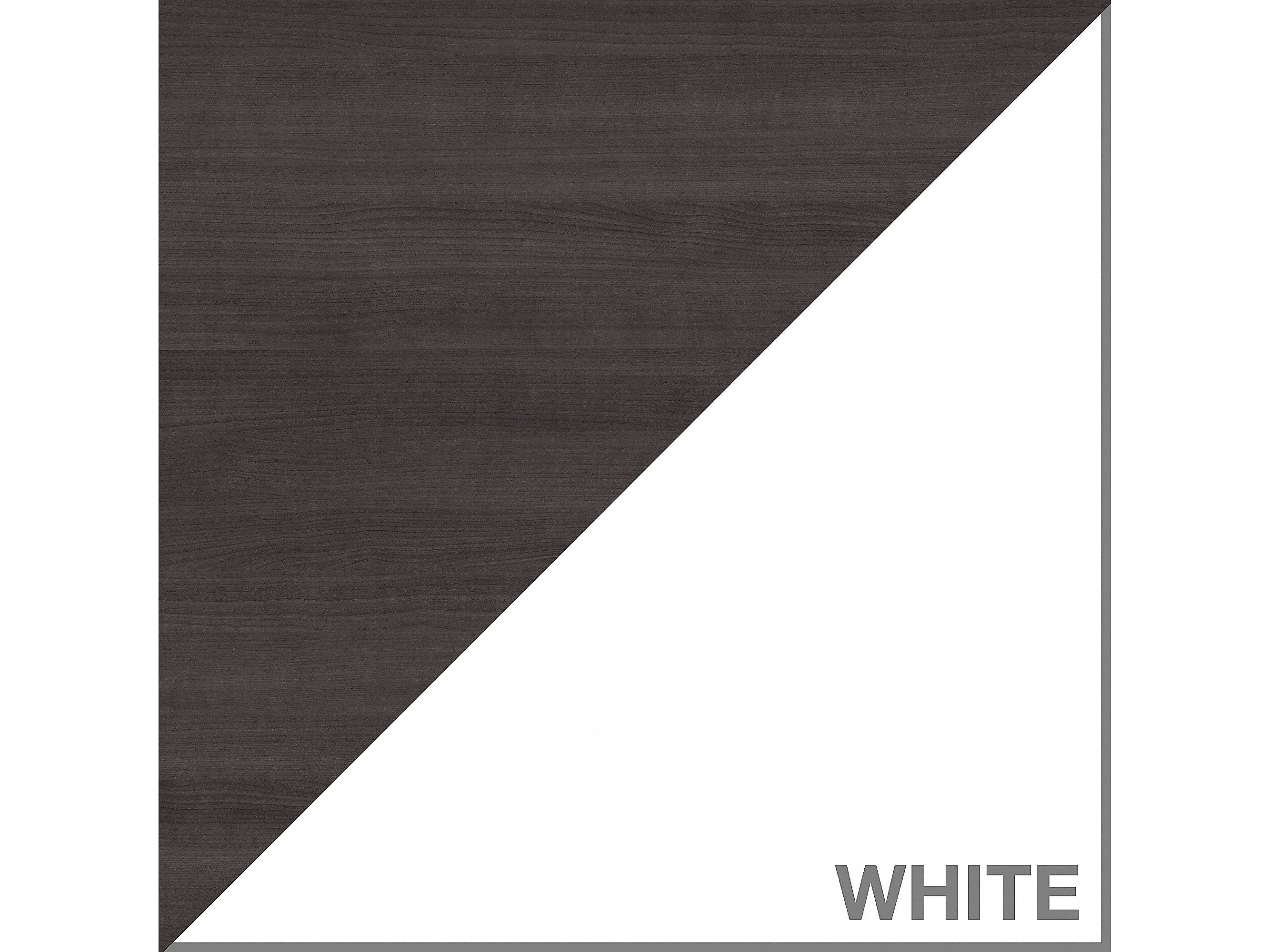 - Comes in storm gray and white and made of laminate over engineered wood