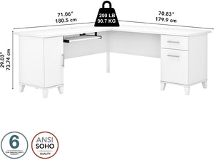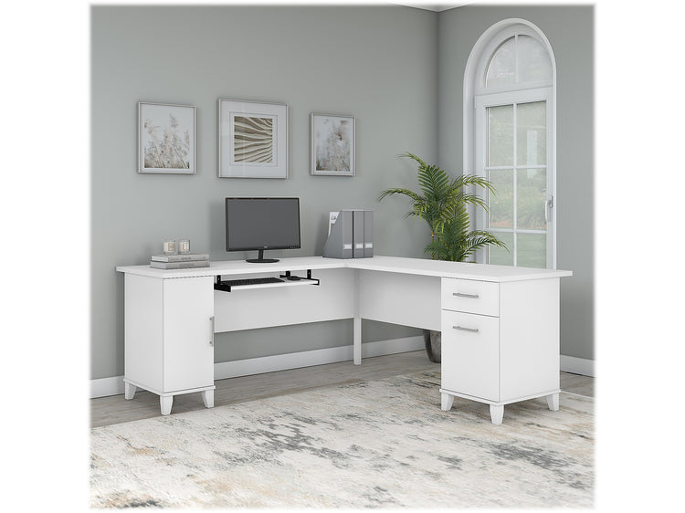 Bush Furniture Somerset 72"W L Shaped Desk with Storage, White (WC81910K)