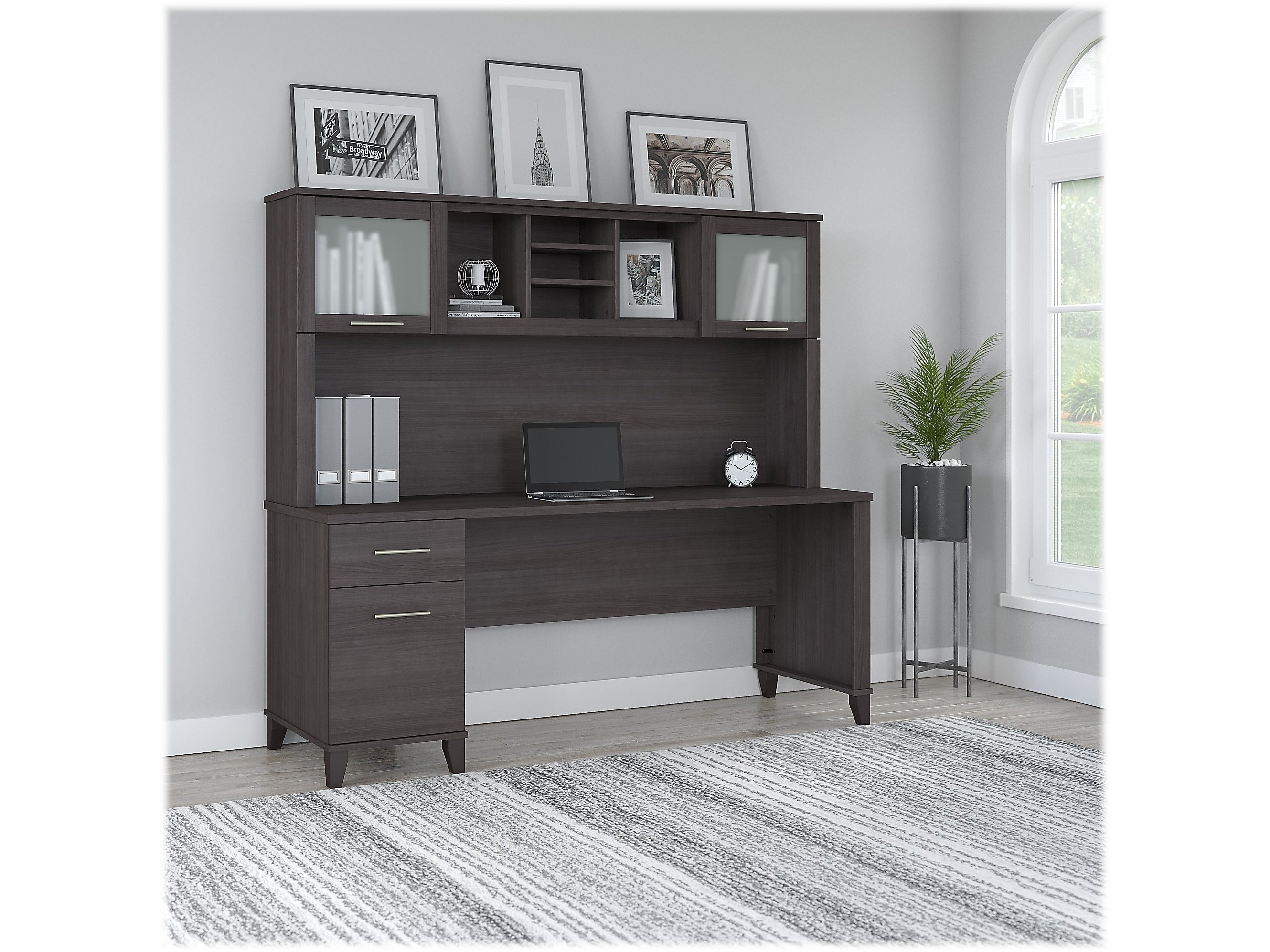 Bush Furniture Somerset 72"W Office Desk with Drawers and Hutch, Storm Gray (SET018SG)