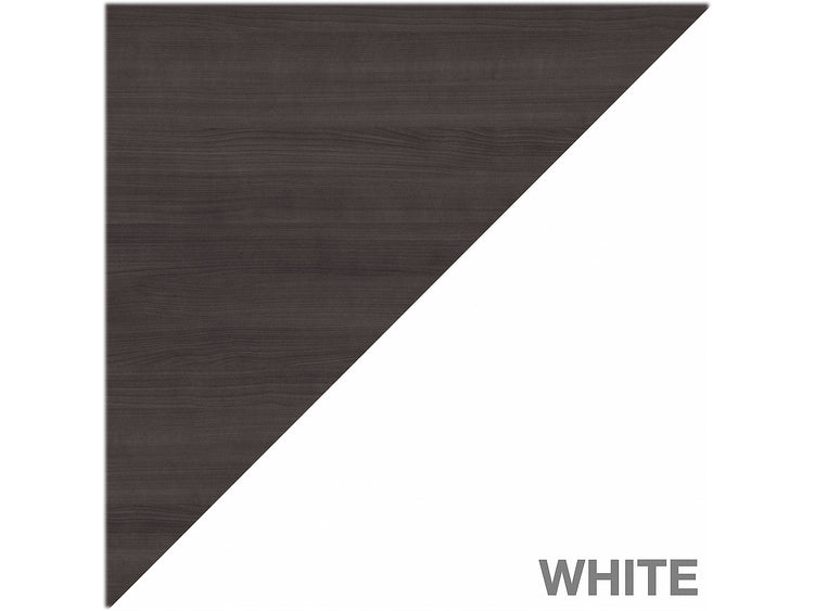- Made of laminate over engineered wood and comes in storm gray and white finish