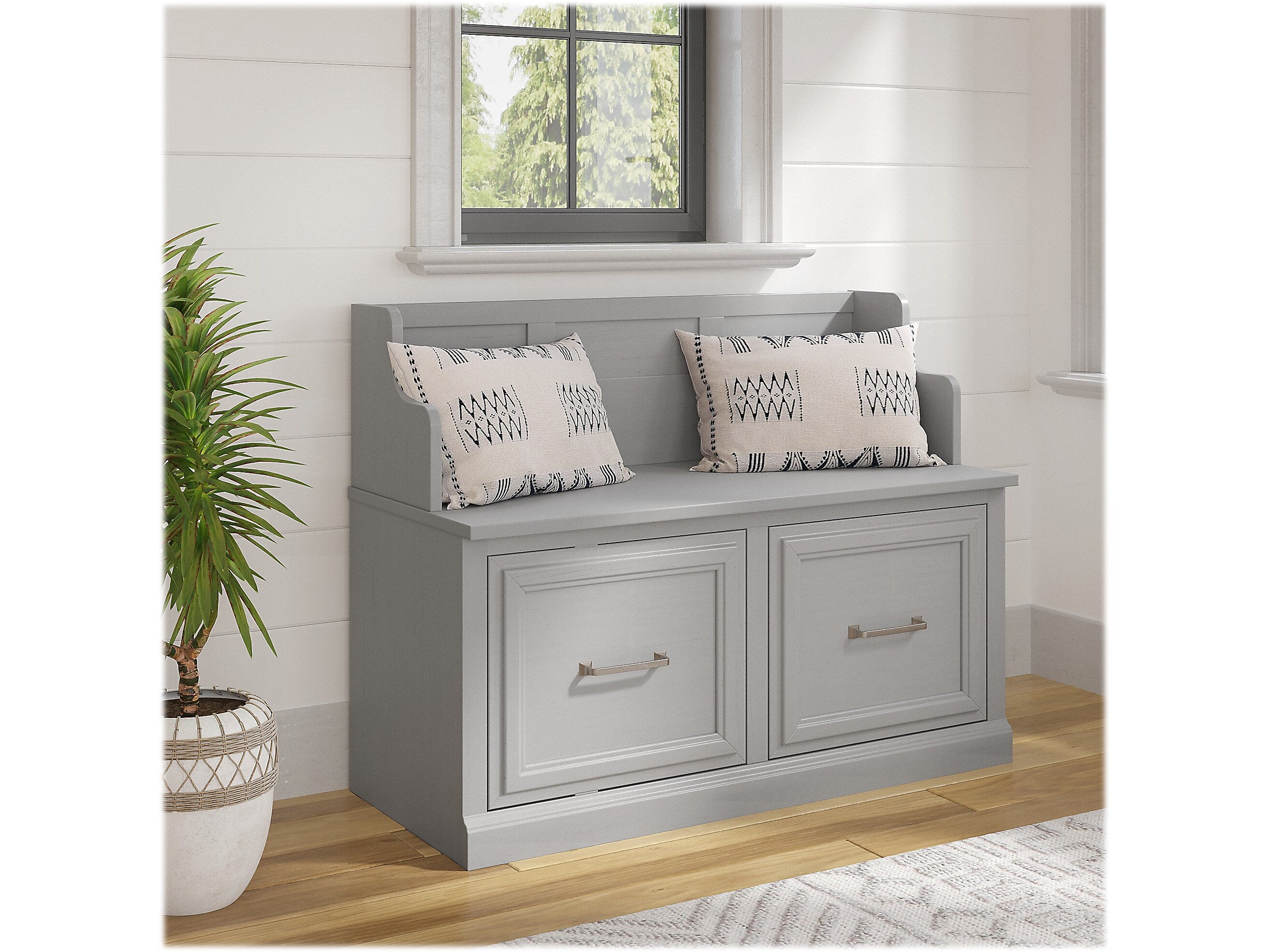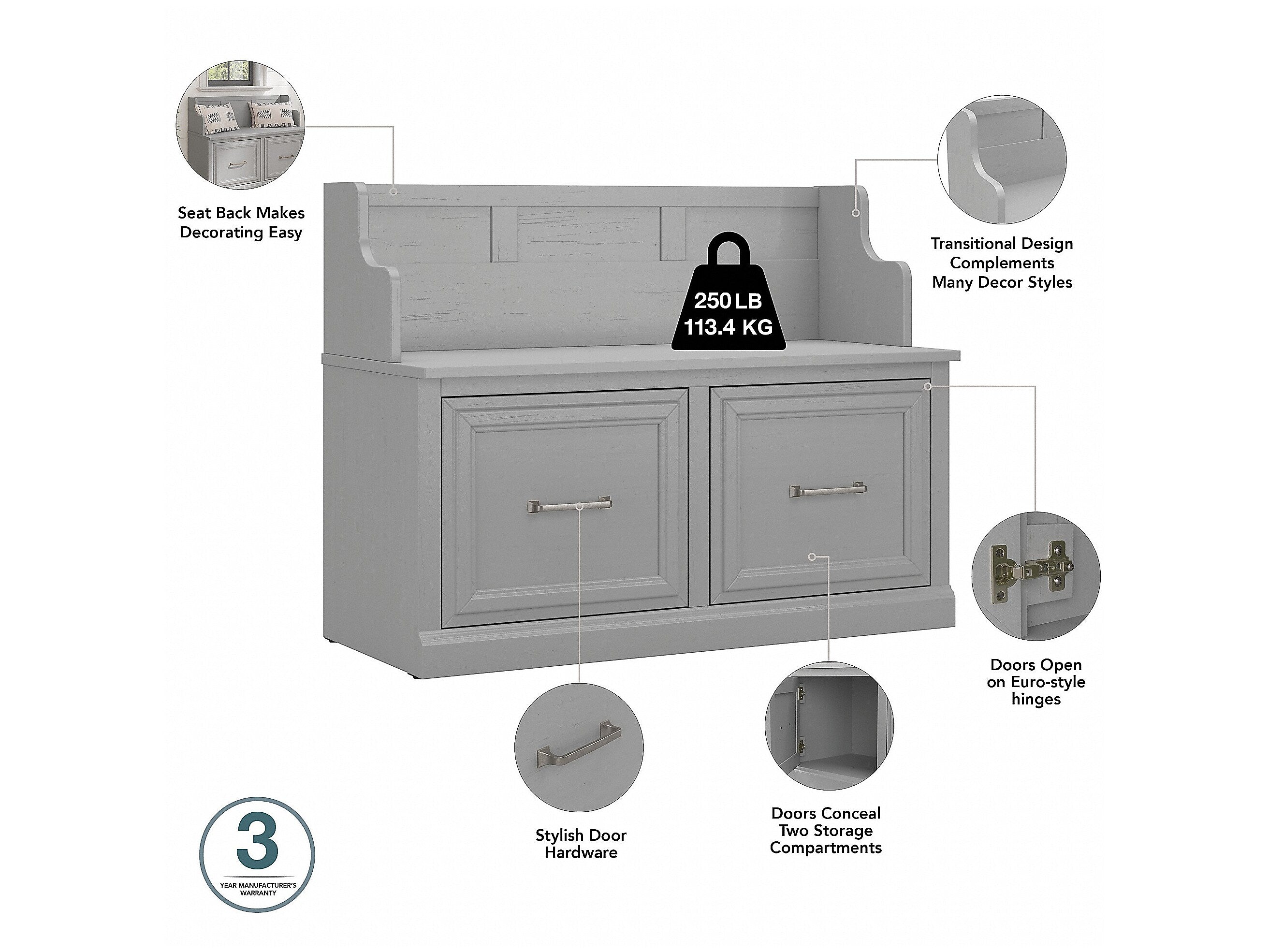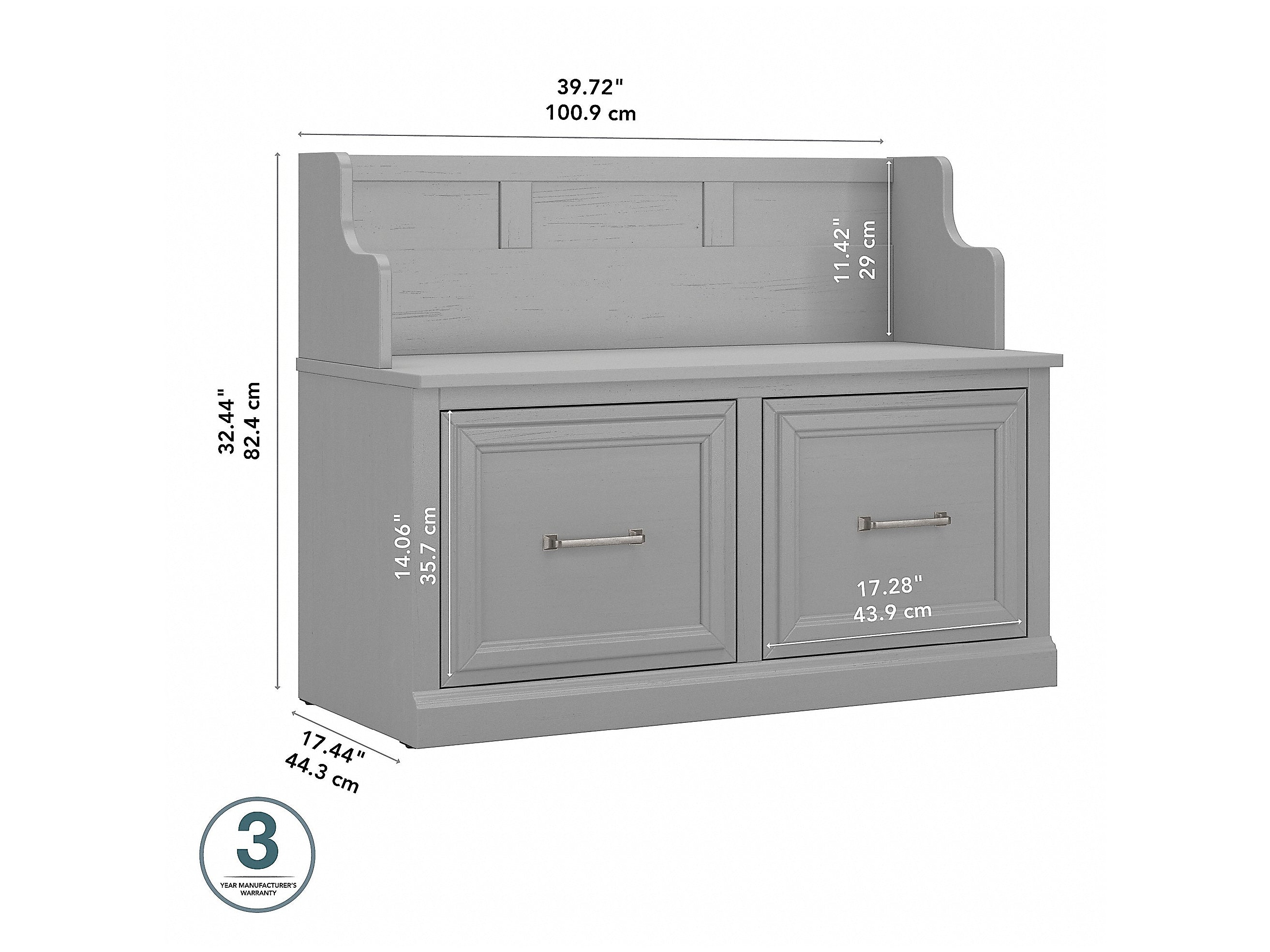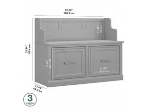 Bush Furniture Woodland 40W Entryway Bench with Doors, Cape Cod Gray (WDL005CG)