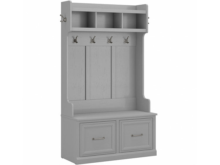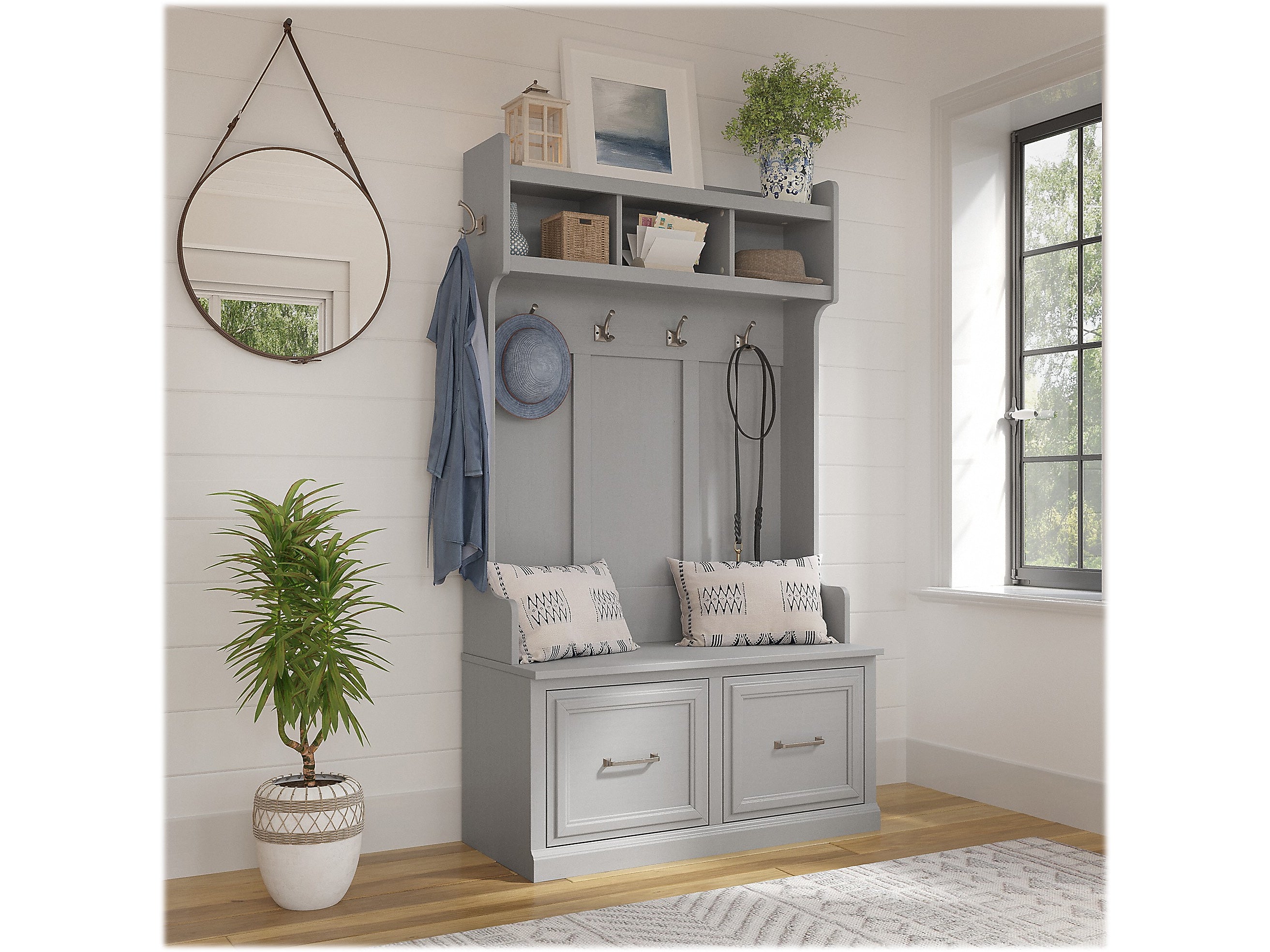 Bush Furniture Woodland 40W Hall Tree and Shoe Storage Bench with Doors, Cape Cod Gray (WDL001CG)