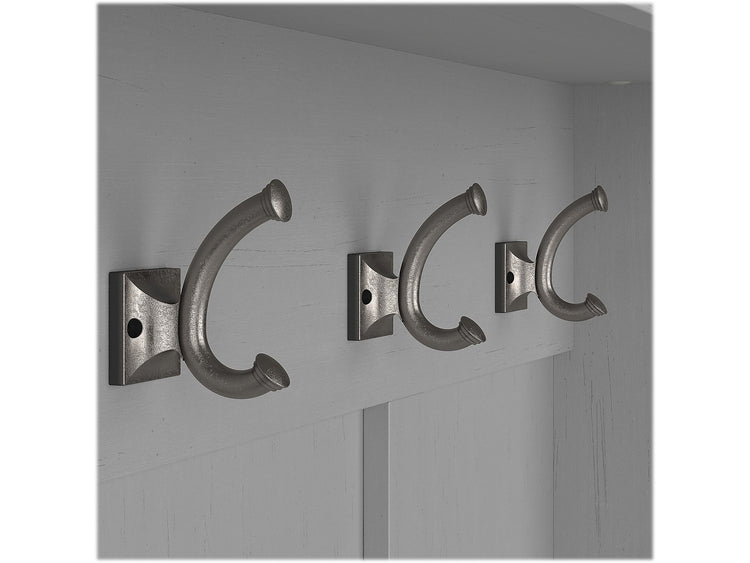 - Hall Tree includes four double-prong coat hooks in the front and one on each side for hanging jackets, hats, scarves and more