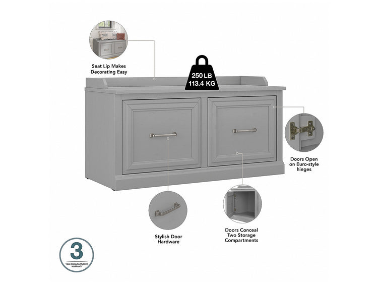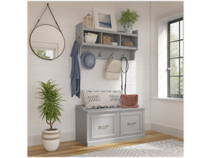 Bush Furniture Woodland 40W Shoe Storage Bench with Doors and Wall Mounted Coat Rack, Cape Cod Gray (WDL003CG)