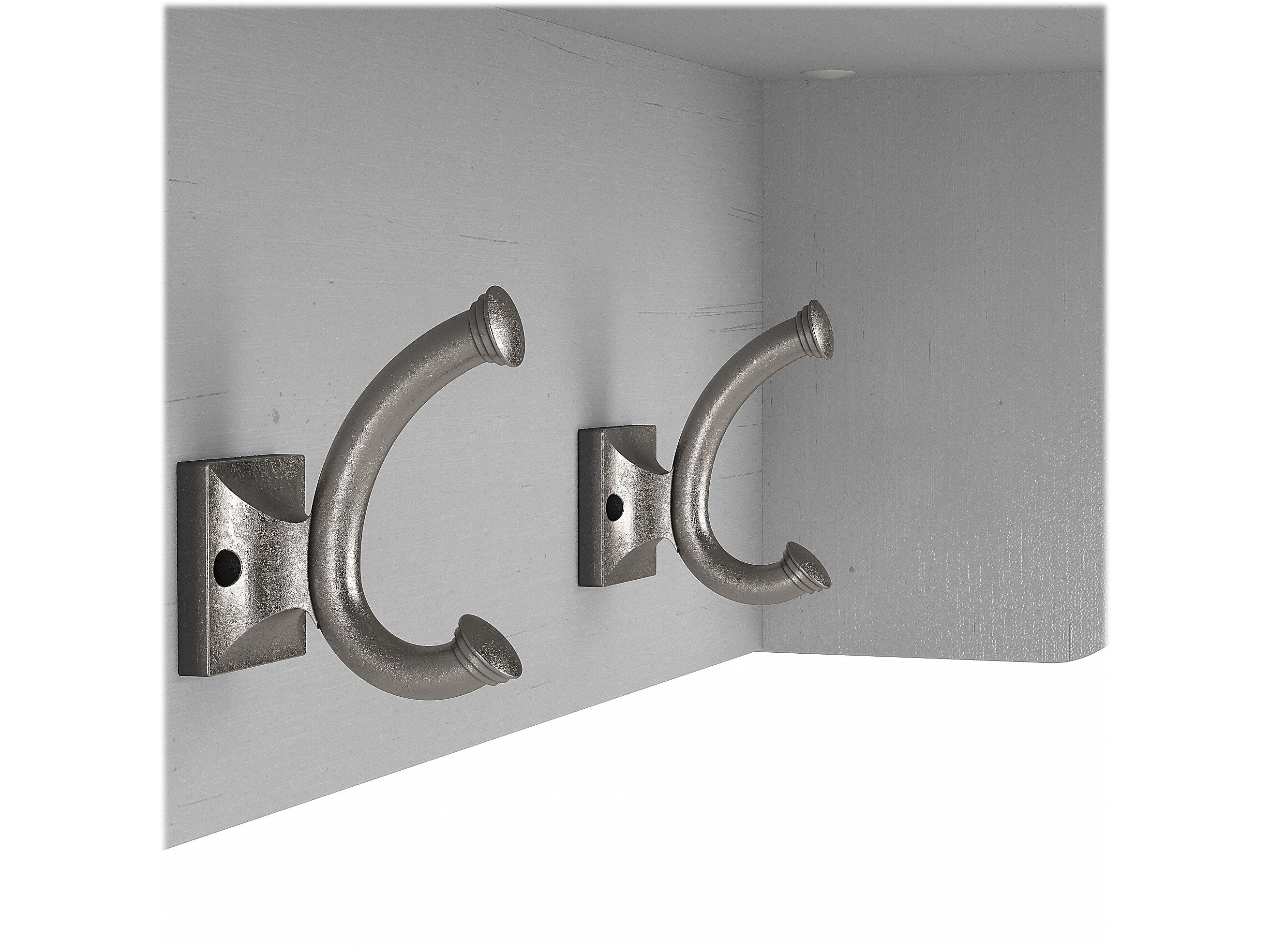 - Wall shelf includes four double-prong coat hooks in the front and one on each side for hanging jackets, hats, scarves and more
