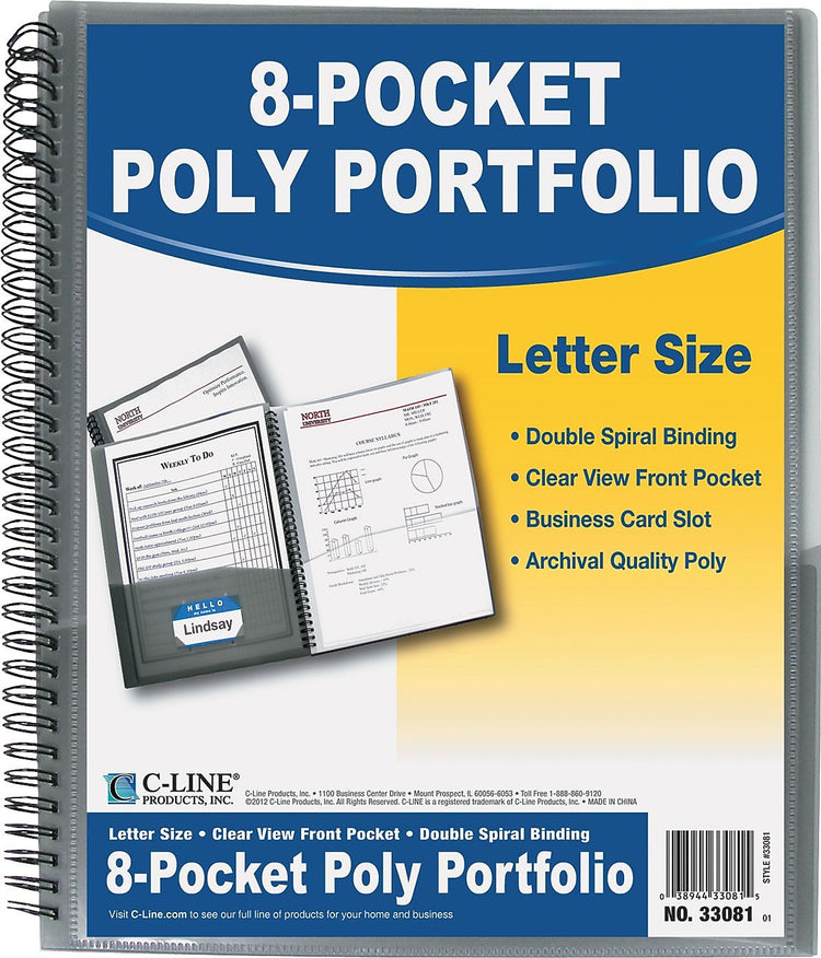 C-Line 8-Pocket Poly Portfolio, Letter Size, Smoke (CLI33081)