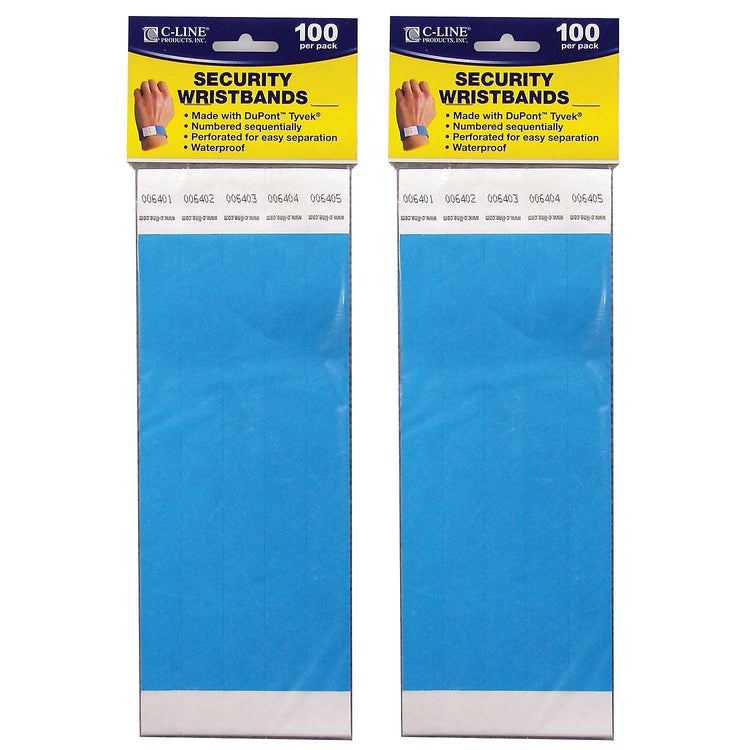 C-Line DuPont Tyvek Security Wristbands, Blue, 100 Per Pack, 2/Pack (CLI89105-2)