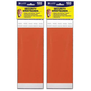 C-Line DuPont Tyvek Security Wristbands, Orange, 100 Per Pack, 2/Pack (CLI89102-2)