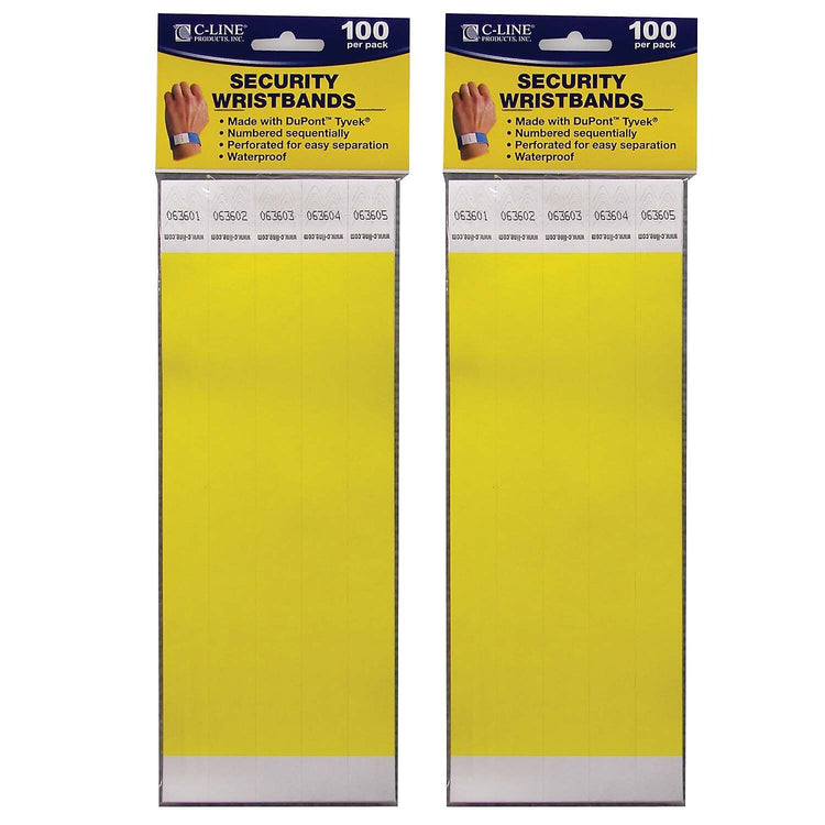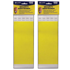 C-Line DuPont Tyvek Security Wristbands, Yellow, 100 Per Pack, 2/Pack (CLI89106-2)