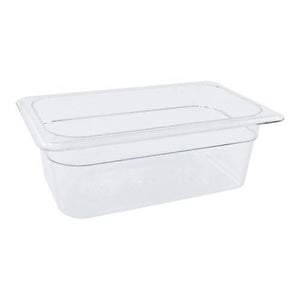 Cambro 1/4 Size 4" Deep Camwear® Food Pan, 3 4/5" H x 6 1/3" W x 10 2/5" D, Clear (44CW135)