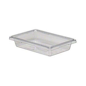 The clear polycarbonate box by Cambro Camwear is made of polycarbonate that resists stains and chemicals. It has a capacity of 1.75 gallons to store products. This 1.75 gallon food box measuring 3.5 x 12 x 18 inches withstands temperature of range of minus 40 to 210 degree Fahrenheit. The Cambro food box is highly durable and is clear, thus it is easy to see the contents of the box. You can store fruits and vegetable, and even make ice in this clear polycarbonate box.
