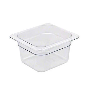 Cambro® Camwear® 2 qt Sixth-size food pan is a food storage unit that is ideal for commercial kitchens. Clear pan measuring 7 1/6" x 10 3/8" x 7 1/3" is 4" deep and is made of polycarbonate plastic for greater durability.