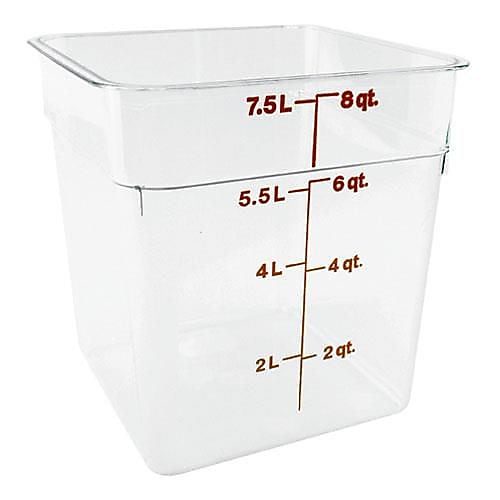 Exceedingly versatile in both size and design, this container is perfect for portioning and storing all your ingredients, toppings, and pre-prepared foods. Simply pair with a compatible lid (sold separately) to keep your foods fresh. Its crystal clear clarity lets you quickly recognize contents and minimize unnecessary openings, while a 8 Qt.. capacity provides users with plenty of storage possibilities.