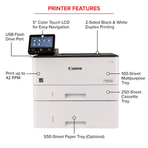 The Canon imageCLASS LBP247dw small office, wireless black-and-white laser printer produces exceptional quality outputs at fast speeds of up to 42 pages per minute, with your first print in your hands in less than 4.9 seconds.