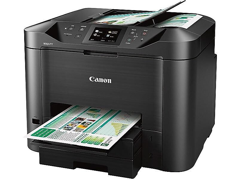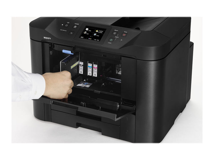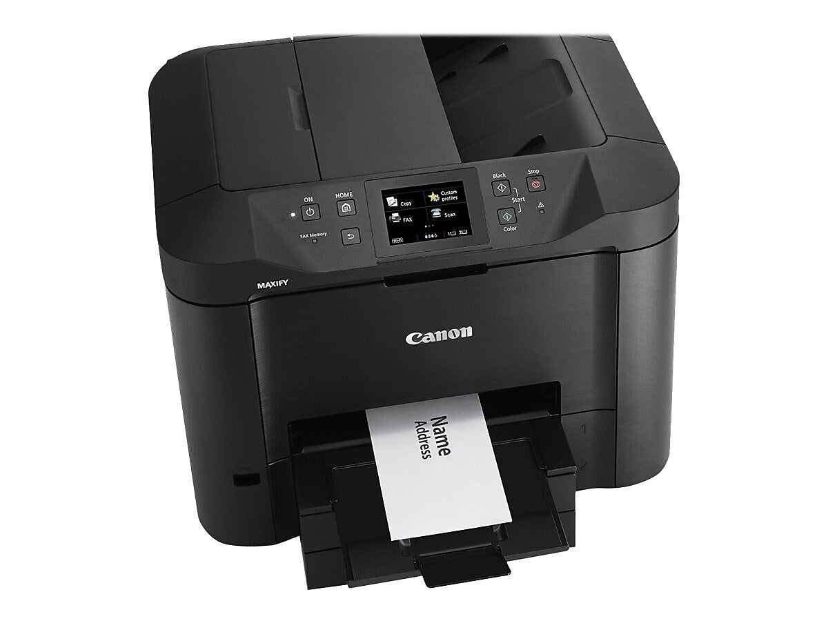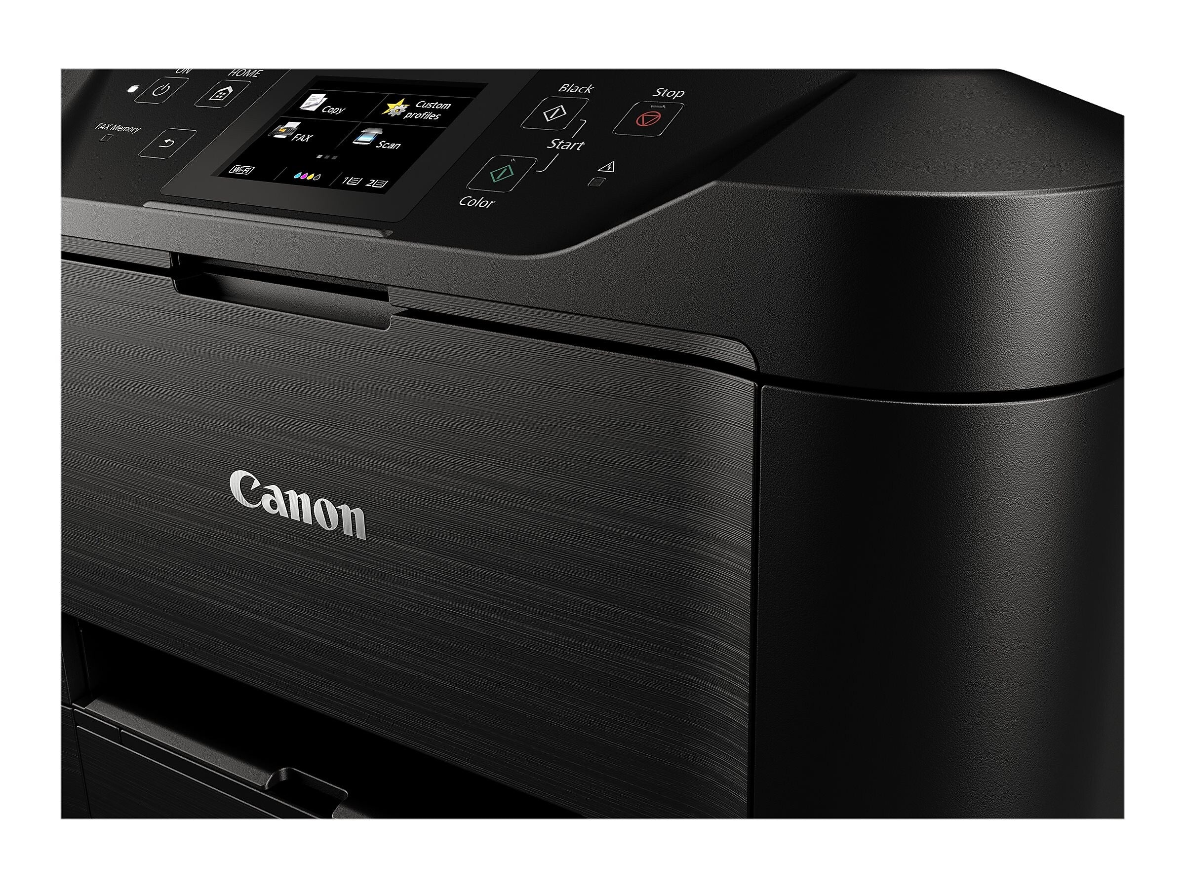 Print detailed documents, make accurate copies and digitize important records with this multifunction color inkjet printer. Featuring built-in Wi-Fi and Ethernet connectivity, this machine offers convenient remote operation and lets you print from mobile devices via cloud printing services. Inkjet printing technology produces sharp, detailed output with a maximum resolution of 600 x 1200 dpi, suitable for printing professional documents. Featuring a flatbed scanner with a maximum resolution of 1200 x 1200 dpi and a 50-sheet automatic document feeder, this machine digitizes stacks of documents in sharp detail without manual feeding. The two 250-sheet input trays and automatic duplex printing let this machine complete large jobs without stopping, while the 75-sheet output tray keeps printed documents in order. This Canon MAXIFY printer lets you print directly from flash drives and other storage media with its high-speed USB port.