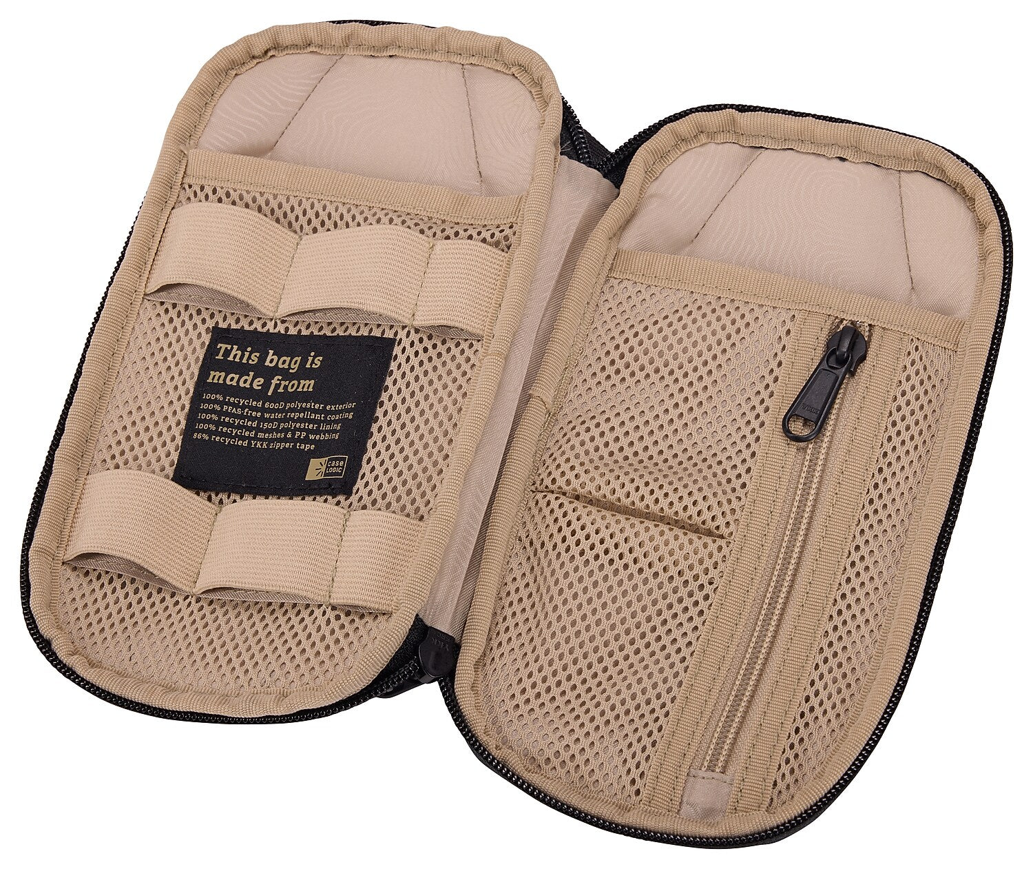 - Organize cables, adapters, earbuds and small personal accessories in a variety of secure pockets and elastic loops