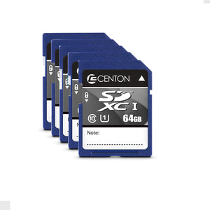 Centon 64GB SDXC Memory Card, UHS1, 5/Pack (S1-SDXU1-64G-5-B)