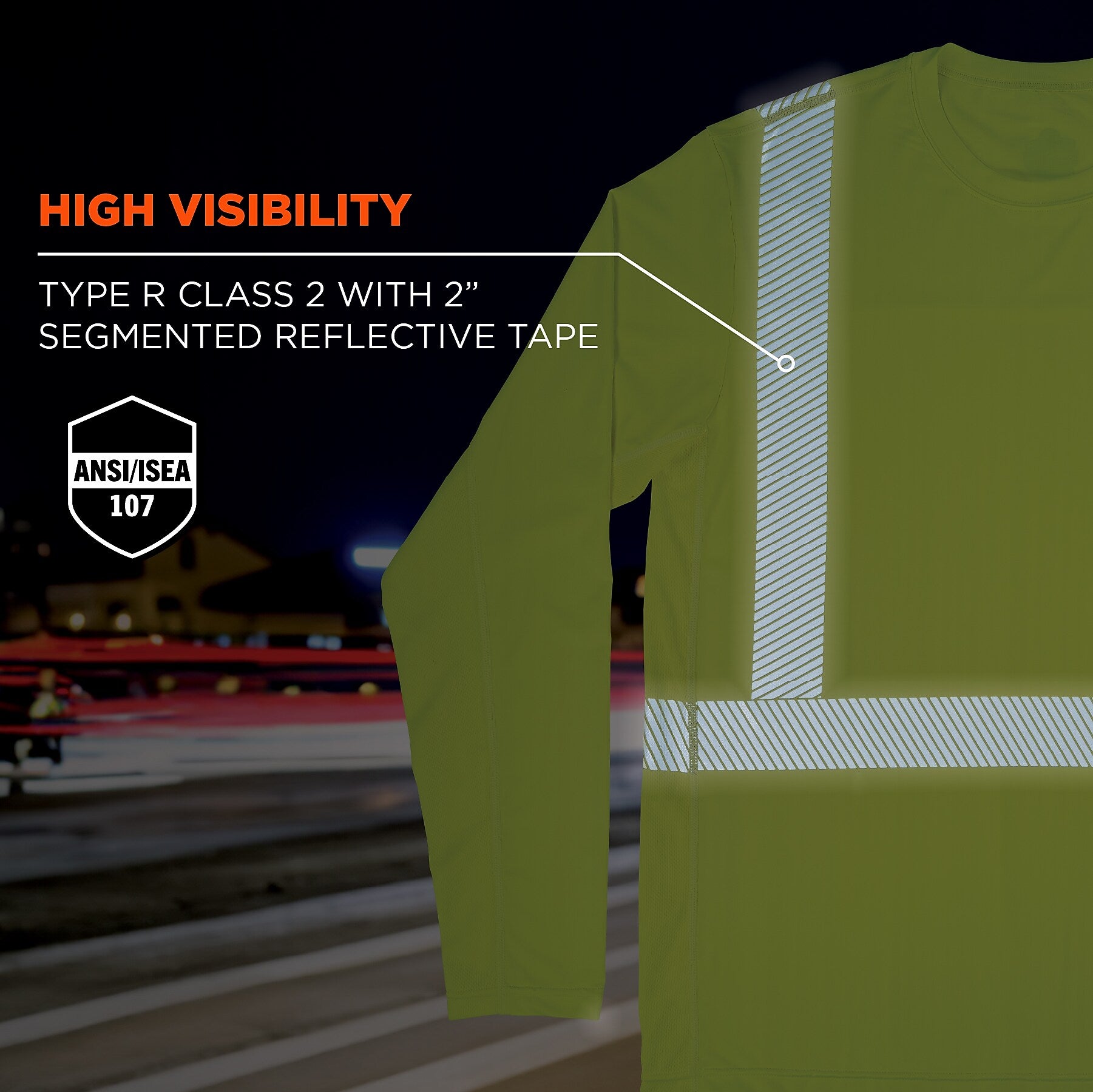 View Details- HIGH VISIBILITY - ANSI/ISEA 107-2020, Type R Class 2 compliant with 2” segmented reflective tape for low-light visibility