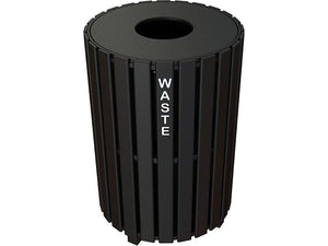 The CleanRiver Carousel waste bin features a traditional round style with a slatted picket fence appearance. Designed with ease of access in mind, the bin is easily accessible through its top plate.