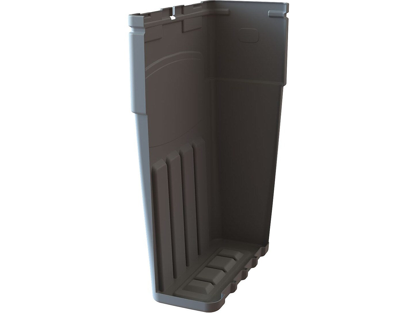 - Made of high-grade HDPE plastic in gray with the cover in black