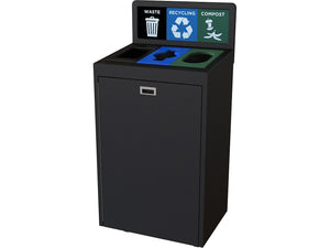 - Comes in gray with black Waste, blue Recycling, and green Compost high-visibility quick change stream labels; made of HDPE recycled plastic