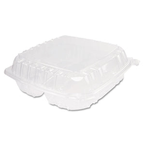 ClearSeal Hinged-Lid Plastic Containers, 3 Compartments, 9.4 x 8.9 x 3, Plastic, 100/Bag, 2 Bags/Carton