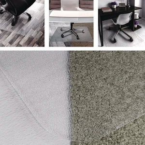 Original Floortex polycarbonate chair mat with anti-slip coating. Highly durable with twice the impact strength of vinyl. Prevents sliding for added stability on polished floors. Will not affect varnished or lacquered wooden floors. Suitable for all hard floors including laminates, parquet, tiles and smooth stone as well as very low, flat pile carpets. Provides the ultimate in quality, clarity and durability for home and office flooring. Clear polycarbonate allows the beauty of the floor to shine through and is the perfect gliding surface for chairs with casters. Polycarbonate is extremely durable and does not curl, crack, discolor or smell. Manufactured using 25% renewable energy.