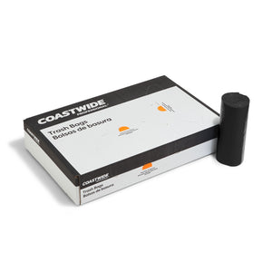 Reduce waste and clean heavy messes with trash bags made from 30% post-consumer recycled content. Capable of handling up to 23 gallons of waste, these Coastwide Professional™ 30% PCR Trash Bags are low-density, making them tear-resistant and able to contain sharp or rough materials. Make stocking up on essentials simple and more eco-friendly with this box of 250 durable garbage bags that will fit medium trash cans.