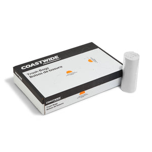 Reduce waste and clean heavy messes with trash bags made from 30% post-consumer recycled content. Capable of handling up to 45 gallons of waste, these Coastwide Professional™ 30% PCR Trash Bags are low-density, making them tear-resistant and able to contain sharp or rough materials. Make stocking up on essentials simple and more eco-friendly with this box of 150 durable garbage bags that will fit large trash cans.