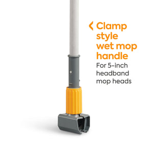 - Clamp-style handle holds 5" headband mop heads firmly between the jaws of the mop