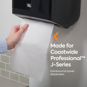 Offer a convenient hand-drying solution for employees and customers with these hardwound paper towels. The 800-foot length provides a lasting supply in high-traffic washrooms and is compatible with mechanical and automatic J-Series dispensers for easy restocking. These Coastwide Professional™ J-Series 1-ply white hardwound towels are absorbent for quick, efficient hand drying and is engineered to work with J-Series dispensers for a perfect fit.