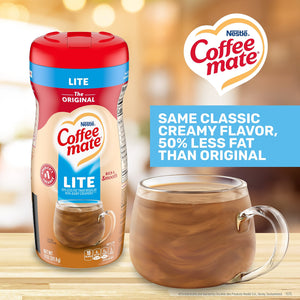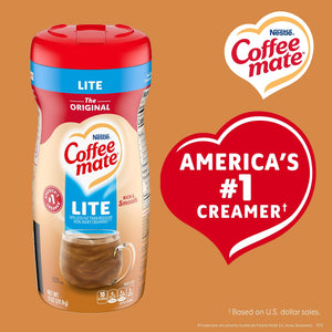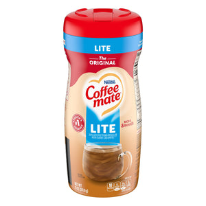 Enjoy creamy coffee with less guilt with this Lite powdered creamer. It contains 50 percent less fat than the original variety for fewer calories, and it's lactose-free, gluten-free and certified kosher to meet restricted dietary requirements. This 11-ounce canister of Coffee-mate powdered creamer has a flip-top lid for easy, controlled pouring.