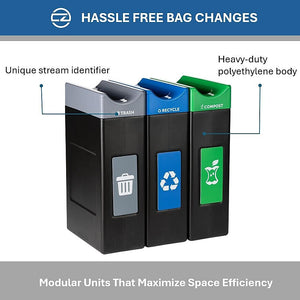 Commercial Zone Avante Black Three-Stream Trash/Recycling/Compost Bin Combo, 90 Gallon, Black (787305MSA)