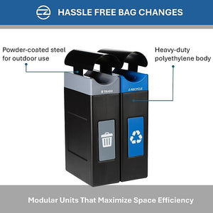 Commercial Zone Avante Series Polyethylene Dual-Stream Trash and Recycling Center, 60 Gallon, Black (787206MSA)