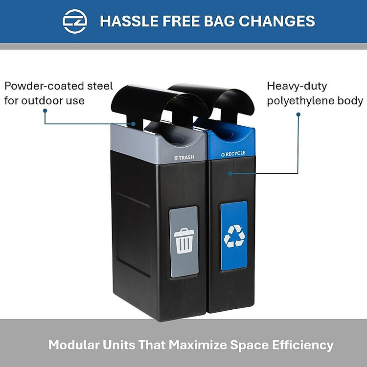 View Details- Unique openings for trash and recycling, liner included