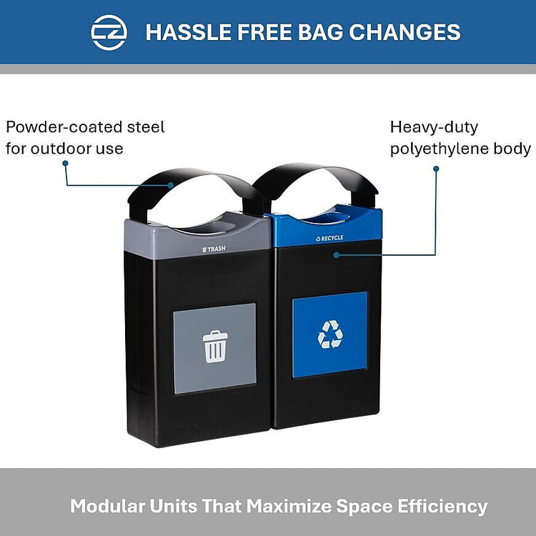 Commercial Zone Avante Series Polyethylene Dual-Stream Trash and Recycling Center, 60 Gallon, Black (787208MSA)