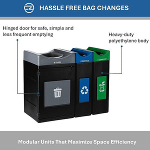 Commercial Zone Avante Series Polyethylene Triple-Stream Trash, Recycling and Compost Center, 115 Gallon, Black (787303MSA)
