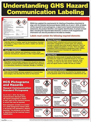 • OSHA-compliant safety poster provides essential information regarding the new GHS labeling requirements including an explanation of the changes and a sample label