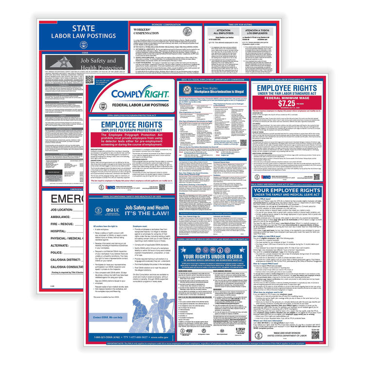 - Attorney-approved, two-poster set covers every state-required employee notice PLUS all mandatory federal postings: Federal Minimum Wage, EEOC, FMLA, Employee Polygraph Protection Act, OSHA and USERRA