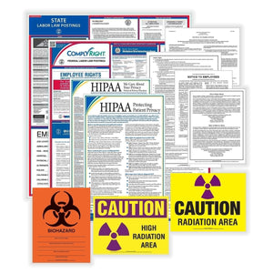 Developed to meet the additional federal and state posting needs of healthcare facilities, ComplyRight Poster Service for Healthcare offers a complete laminated federal and state poster set, along with industry-specific posters, to help healthcare employers comply with these requirements and ensure that employees are informed of their rights. This service includes one year of legal monitoring and automatic updates at no additional cost for 365 days of worry-free compliance. All posters meet strict government requirements for color, font and size. The topics covered in the posters include: Fair Labor Standards Act, Family and Medical Leave, Employee Disabilities Rights, Minimum Wage, Equal Employment Opportunity, Child Labor Law, Veteran Rights, Rad Radiation, Job Safety and HIPAA.