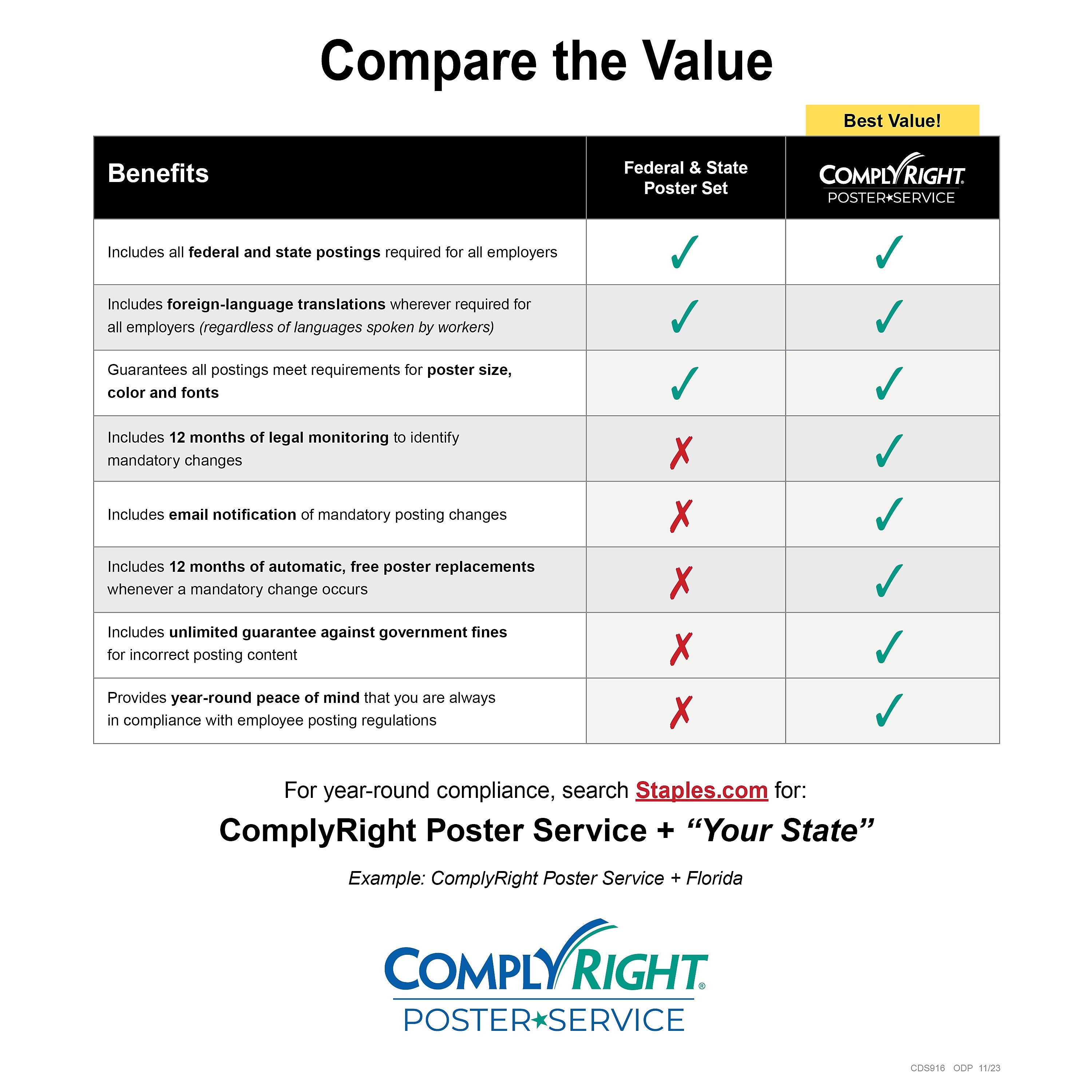 Get your business in compliance with the latest state labor law posting requirements. All-in-one, attorney-approved ComplyRight Labor Law Posters cover every mandatory employee-facing notice to streamline state posting compliance.
