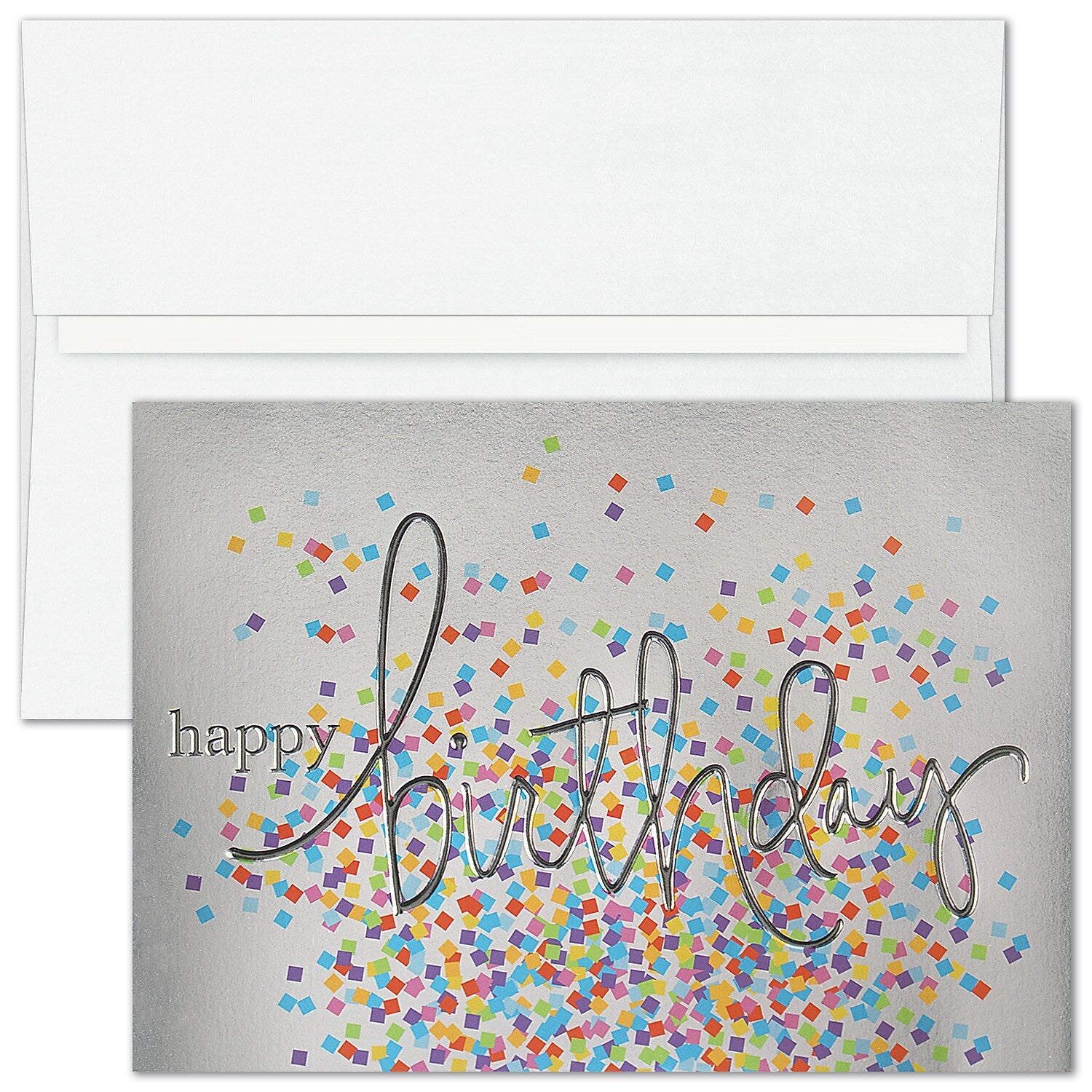 "Confetti on Silver" Birthday Card w/ Unlined White Envelope, 250/BX