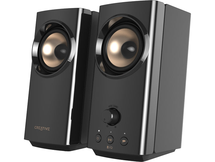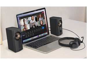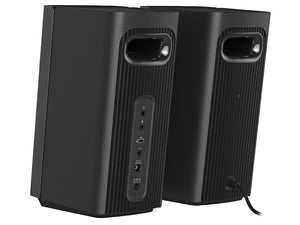 The Creative T60 computer speakers feature Clear Dialog and Surround technologies powered by Sound Blaster's audio expertise to deliver clear-spoken dialogue and enhanced surround sound for greater immersion. Backed by powerful acoustics with built-in digital amplifier and BasXPort technology that further enhances bass performance, your desktop movie experience will be changed forever. When it comes to work, the SmartComms Kit makes it simple to communicate online with auto mute and two-way noise cancelation features, so you can focus on your online meetings or in-game chatting. The Creative T60 also comes with a plethora of connectivity options, including USB Type-C audio to your gaming consoles, built-in headset and microphone jacks for when you need to attend an online work call, and a convenient speaker and headphones switch button that is easy to reach.